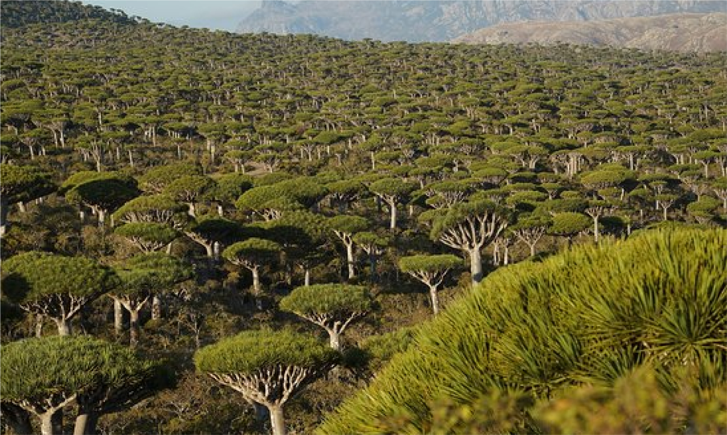 غابة فرهمين هي واحدة من أكثر المناطق جاذبية في جزيرة سقطرى، وتشتهر بكثافة أشجار دم التنين القديمة، مما يخلق منظرًا طبيعيًا سرياليًا من عالم آخر. الغابة هي رمز للنباتات الفريدة في سقطرى وملجأ هادئ للطبيعة.
